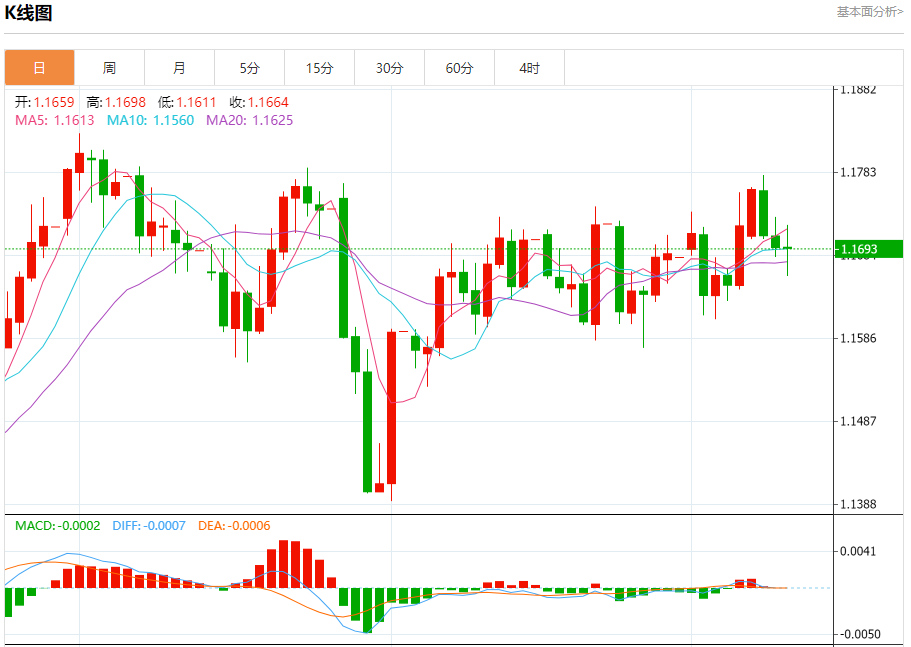 周四盘中,欧元/美元报1.1717,涨幅0.22%。 今日分析:看跌,在1.1730之下。 技术点评:RI技术指标小于中性区域50。ACD技术指标处在其信号线之下看空。配置为负。此外,价位低于其20天及50天移动平均线(分别位于1.1708和1.1707)。 支撑位:1.16391.16201.1601 阻力位:1.17801.17611.1730