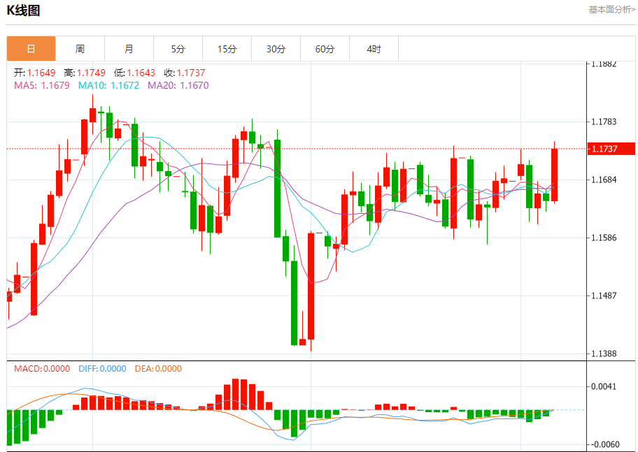 周五盘中,欧元/美元报1.1747,涨幅0.85%。 今日分析:在1.1665之上,看涨,目标价位为1.1700,然后为1.1725。 技术点评:RI技术指标呈现继续上升趋势。 支撑位:1.16651.16501.1630 阻力位:1.17401.17251.1700 (亚汇网编辑:冰凡)