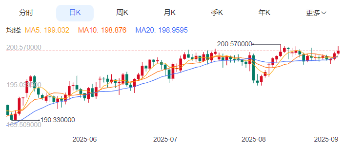 周二,英镑/日元上涨0.18%至199.71附近。 英镑方面,8月7日,英国央行英格兰银行宣布,下调基准利率25个基点至4%,一年内第五次降息。此次议息会议出现了“三方分歧”的投票局面,有报道称这也是英国央行货币政策委员会(C)史上首次被迫进行两次投票。C有9名委员,针对利率决议的首次投票结果为:4名委员支持按