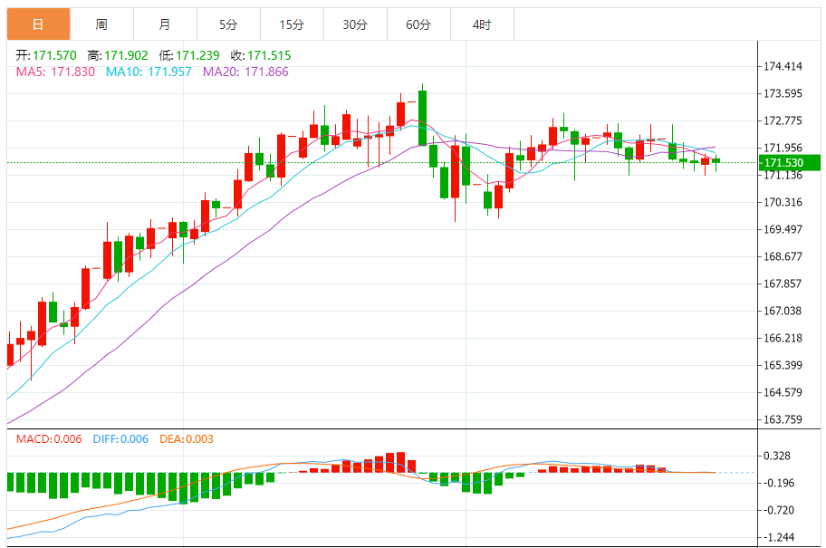 周五,欧元/日元下跌0.05%至171.584附近。 欧元方面,欧洲央行近期维持利率稳定,但鉴于欧元区经济增长放缓以及通胀压力有所缓解,市场对其未来货币政策走向存在一定分歧,部分投资者预期欧洲央行可能在未来采取适度宽松措施以刺激经济增长。欧元区经济增长数据显示出动力不足,制造业I等数据持续在荣枯线附近徘