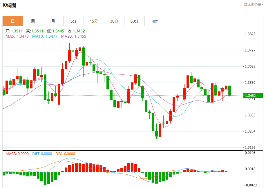 周五盘中,英镑/美元报1.3456,跌幅0.41%。 今日分析:在1.3505之下,看跌,目标价位为1.3460,然后为1.3435。 技术点评:RI技术指标看跌,有进一步下降空间。 支撑位:1.34601.34351.3415 阻力位:1.35451.35301.3505 (亚汇网编辑:冰凡)