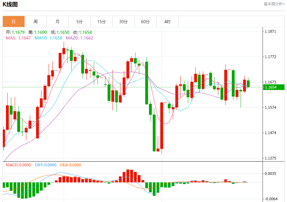 周五盘中,欧元/美元报1.1656,跌幅0.22%。 今日分析:在1.1655之上,看涨,目标价位为1.1695,然后为1.1720。 技术点评:1.1655附近形成了一个支撑的底部,将带来走势短期内的稳定。 支撑位:1.16551.16301.1600 阻力位:1.17401.17201.1695 (亚汇网编辑:冰凡)