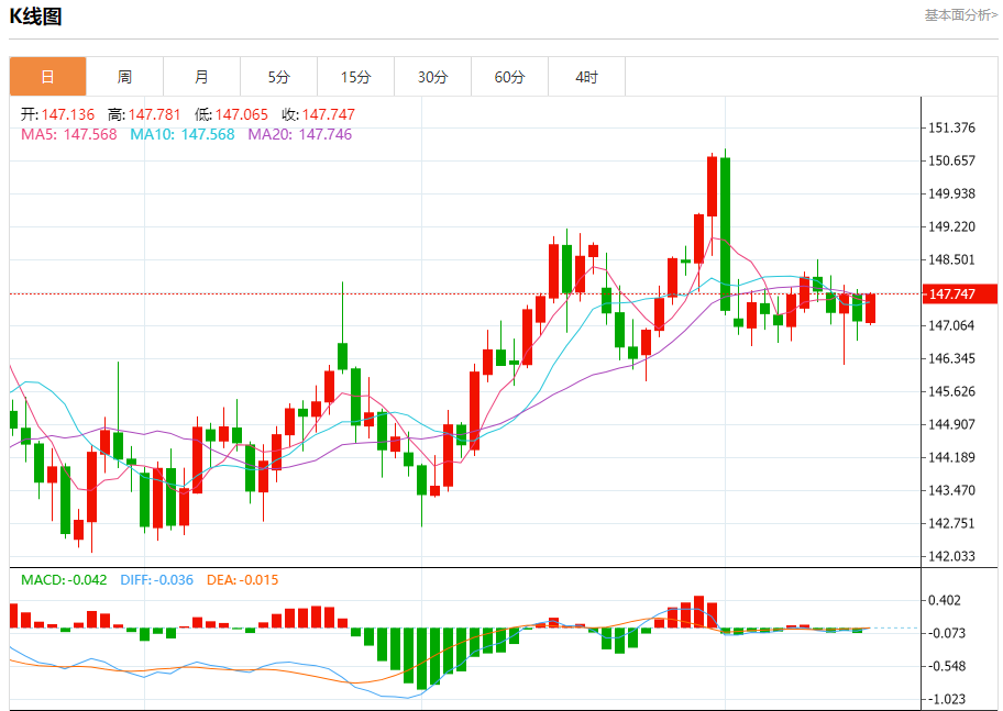 周一盘中,美元/日元报147.828,涨幅0.43%。 今日分析:在147.00之上,看涨,目标价位为147.60,然后为147.95。 技术点评:RI技术指标运行趋势复杂,倾向于上升。 支撑位:147.00146.75146.40 阻力位:148.15147.95147.60 (亚汇网编辑:冰凡)