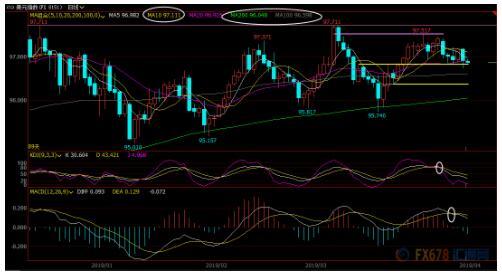结论:收复97.11前,短线偏向下探96.60附近支撑。