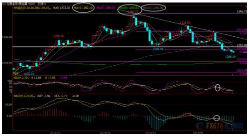 上方1275.44位置已经转化为初步阻力所在,近一周高点阻力在1279.81附近;10日均线阻力在1282.20附近,在收复该位置前,后市依然偏向震荡下行;100日均线阻力在1290.36附近,若意外收复该位置,则削弱看空信号。