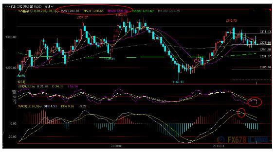 若意外顶破上周高点1303.40附近阻力,则削弱看空信号。5周均线阻力目前在1280.90附近,10周均线阻力在1286.66附近,20周均线阻力在1295.77附近。