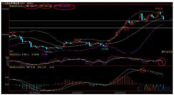 5均线阻力在1337.95附近,若收复该位置,则削弱短线看空信号;布林线上轨阻力在1344.22附近,若重新顶破该位置,则增加看涨信号。