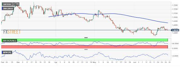 英镑/美元周四继续区间震荡,汇价一度突破1.2700,但接近1.2725时再度回落。英国政治戏码乏善可陈。汇价仍取决于其他货币走势。周五将公布英国第一季度GDP最新预估值,若没有修正,则市场将选择忽略。美国将公布核心PCE物价指数、个人收入、支出数据。美国总统特朗普目前在日本参加周五开始的G20峰会。双方的会晤受到关注。