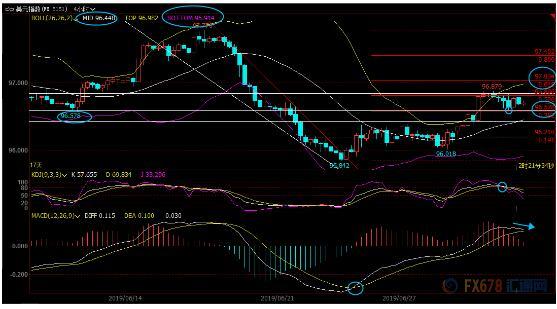 下方进一步支撑分别在19.1%回撤位96.21和布林线下轨95.91附近。