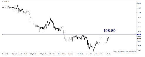 因风险情绪可能改善,美元/日元或许会升向108.80。