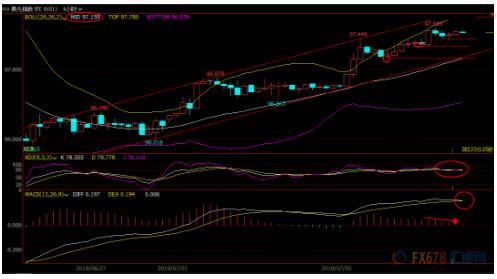 结论:失守97.41前,短线偏向多头;失守97.13前,中线偏向多头。
