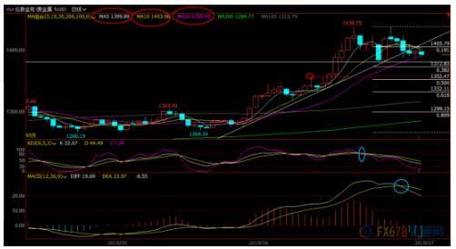 日线级别:高位震荡;MACD和KDJ市场,5日均线下穿10日均线死叉,金价受到5日均线的压制,连续两个交易日冲高回落,尽管目前还受到20日均线的支撑,但后市仍存进一步下行风险;初步支撑在20日均线1390.44附近,隔夜低点支撑在1385.60附近,上周低点支撑在1381.69附近。