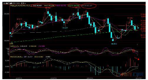 上方5日均线阻力目前在96.98附近,100日均线阻力目前在97.15附近,若意外顶破该阻力,则削弱短线看空信号。