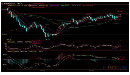 不过,MACD依然金叉运行,上方留意5日均线98.20附近阻力,若回升至该位置上方,则削弱短线看空信号。