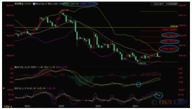 若顶破布林线上轨1498.55附近阻力,则可能会进一步试探1557-1484跌势的38.2%回撤位1512.35附近阻力,50%回撤位阻力在1520.90附近。