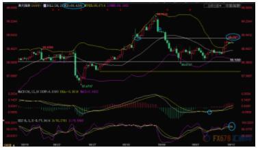 由于KDJ有死叉趋势,下方留意布林线中轨98.43附近支撑,若意外回落至该位置下方,则增加短线看空信号。