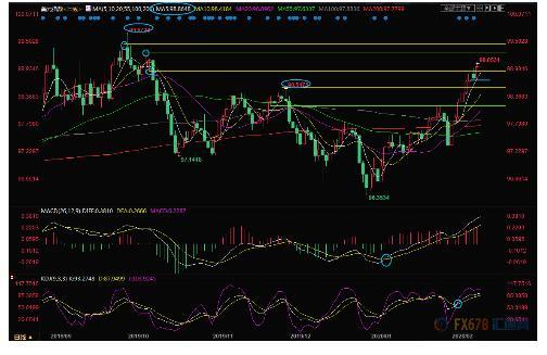 下方98.89已经转化为初步支撑所在,接近5日均线98.87位置;周三低点支撑在98.70附近,因为KDJ发出超买信号,若意外回落至该位置下方,则增加短线回调风险。