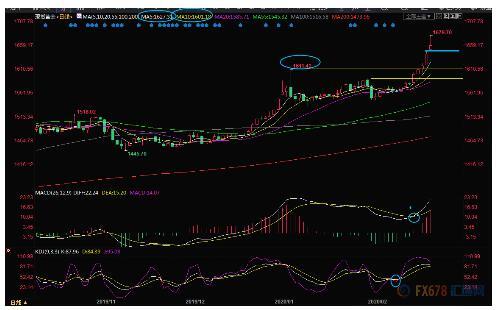 下方初步支撑在上周高点1549.26附近,布林线上轨支撑在1633.53附近,5日均线和1月10日高点支撑在1611.42附近,然后是1600整数关口支撑,若回落至该位置下方,则削弱中线看涨信号。
