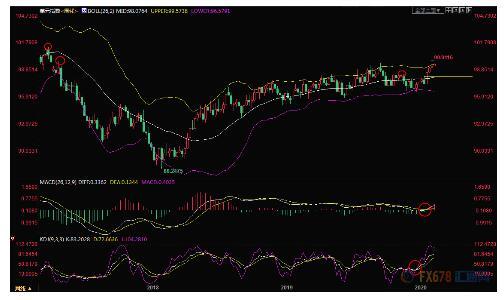 由于目前10日均线还给汇价提供支撑,MACD金叉信号仍在,若汇价震荡顶破上周高点99.91附近阻力,则有望打开新的上涨空间。2017年4月14日高点阻力站在100.60附近,2017年4月18日高点100.40附近也存在一定的阻力。