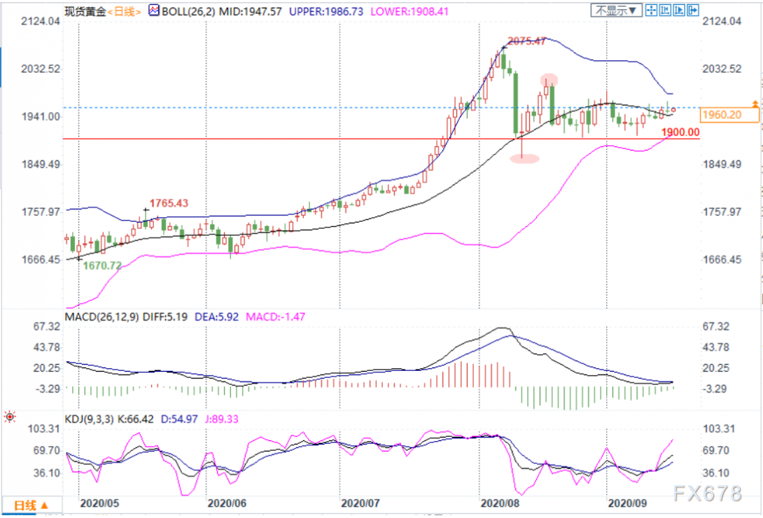 下方初步支撑先留意布林带中轨1952.25,进一步支撑位看向下轨1936.85;强支撑下看8月26日低点1902.89。