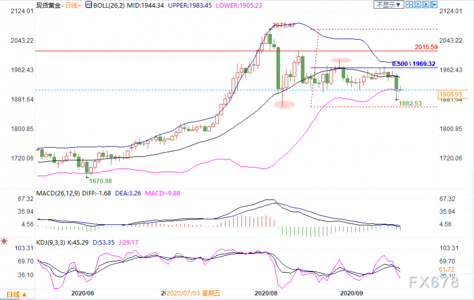 上行方面,先留意布林带中轨1944.33,进一步阻力上看布林线上轨1983.45附近。若能顶破该点位,则增加后市看涨信号,强阻力看向8月18日高点2015.59;甚至有望重新试探前期高点2075.47。此外,9月1日高点1992.48也存在一定阻力。