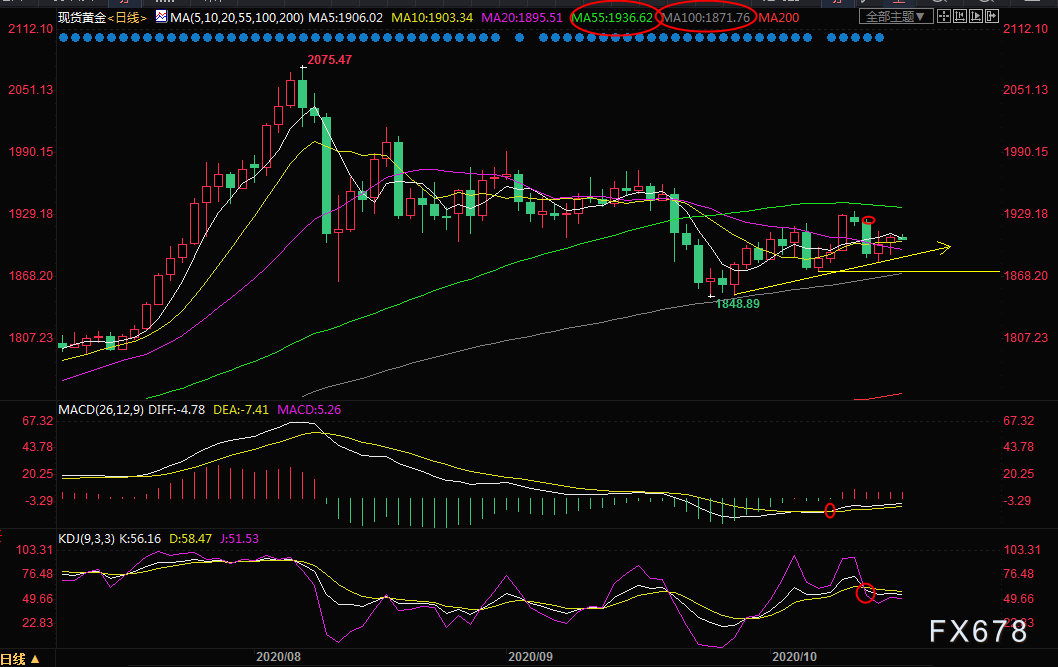 由于周二的中阴线看空信号仍在,在顶破周二高点1925.47前,短线略微偏向震荡下行;初步支撑在1900关口附近,周四低点支撑在1890附近,本周低点和10月8日低点支撑都在1882附近,关键支撑在100日均线1872附近,也是10月7日触及的近三周低点支撑所在。