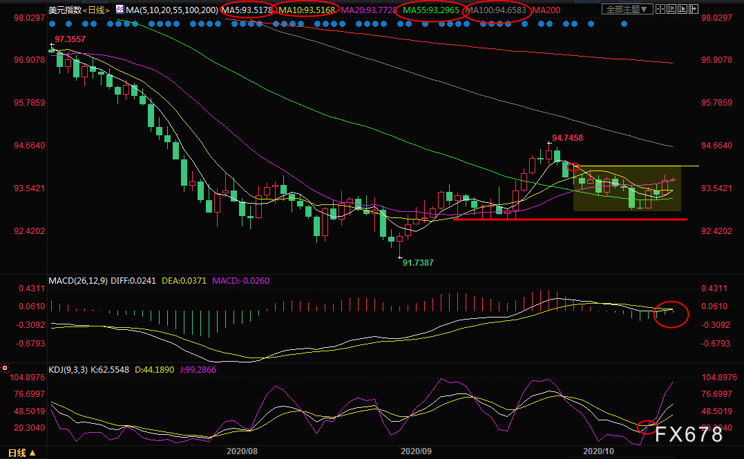 需要警惕的是,若不能顶破94.20附近阻力,汇价也有可能维持在93.00-94.20区域震荡后再选择进一步的方向。