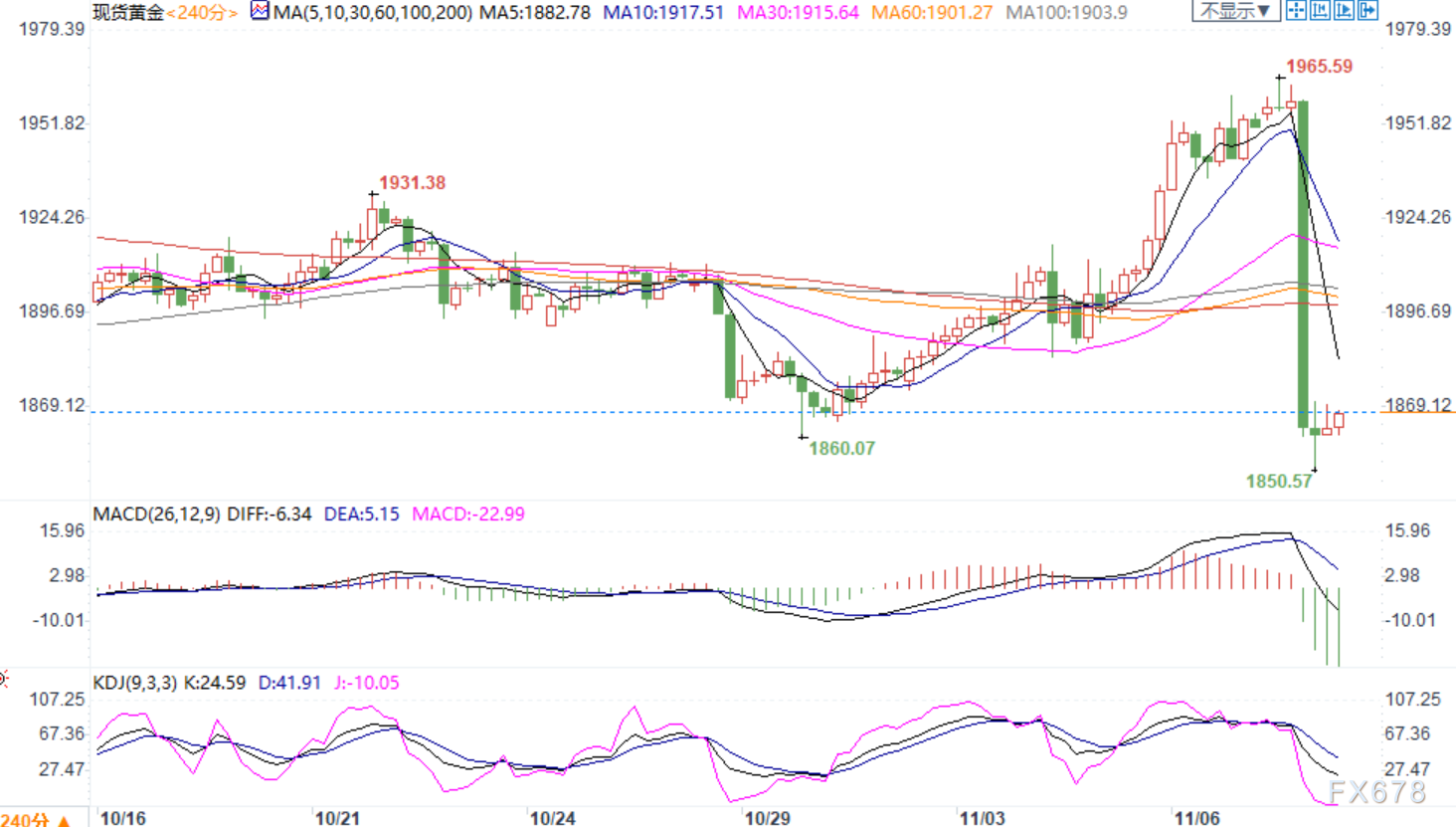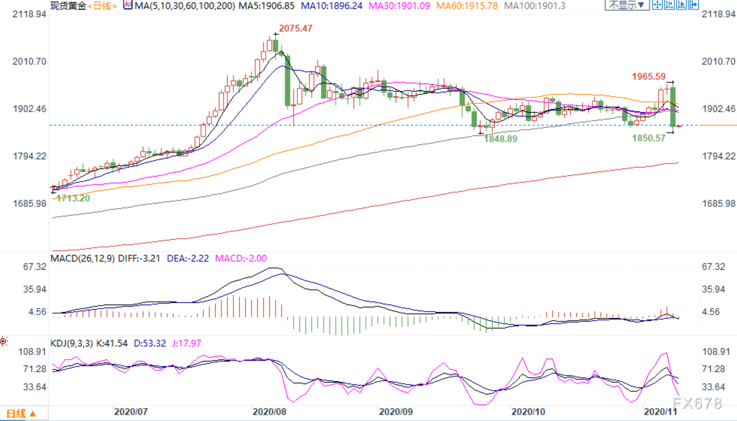 周二(11月10日)亚洲时段,辉瑞周一表示,根据初步试验结果,旗下实验性新冠疫苗的有效性超过90%,市场对拜登当选美国总统后出台更多刺激措施的预期增强,但因随着首个新冠疫苗后期试验成功的消息传出,促使投资者抛售避险黄金,涌向风险较高的资产,全球股市纷纷大涨,这令黄金遭遇巨量抛售。