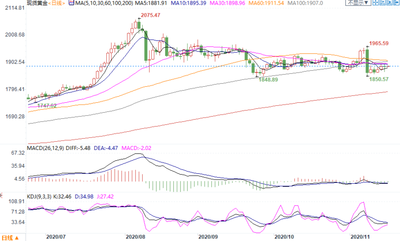 全球风险资产的强劲依旧是黄金上升的最大阻力,如果更多疫苗提振了整体宏观市场风险偏好,黄金难以再创新高,因持有无息黄金面临高昂的机会成本,不过,尽管隔夜的疫苗利好风险资产,但黄金在1865获得支撑,且再度回到1890附近,因此疫苗的利好正在消散。