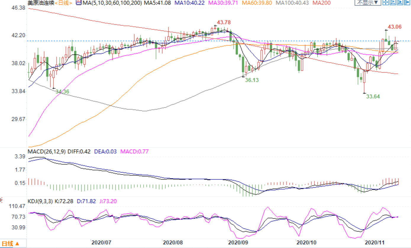 解析:Moderna表示,其实验新冠疫苗有效率为94.5%。这提振了风险资产,油市需求也有望继续复苏。OPEC+倾向于将1月增产计划至少推迟三个月,以支撑油价,因第二波新冠疫情仍在继续。