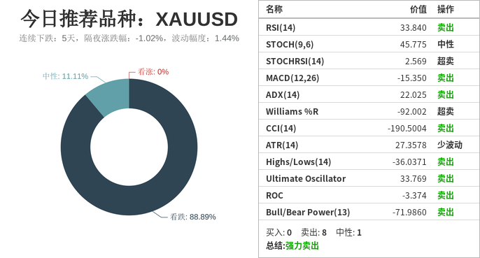 国际黄金(下跌:5天,隔夜涨跌幅:-1.02%,波动幅度:1.44%)。