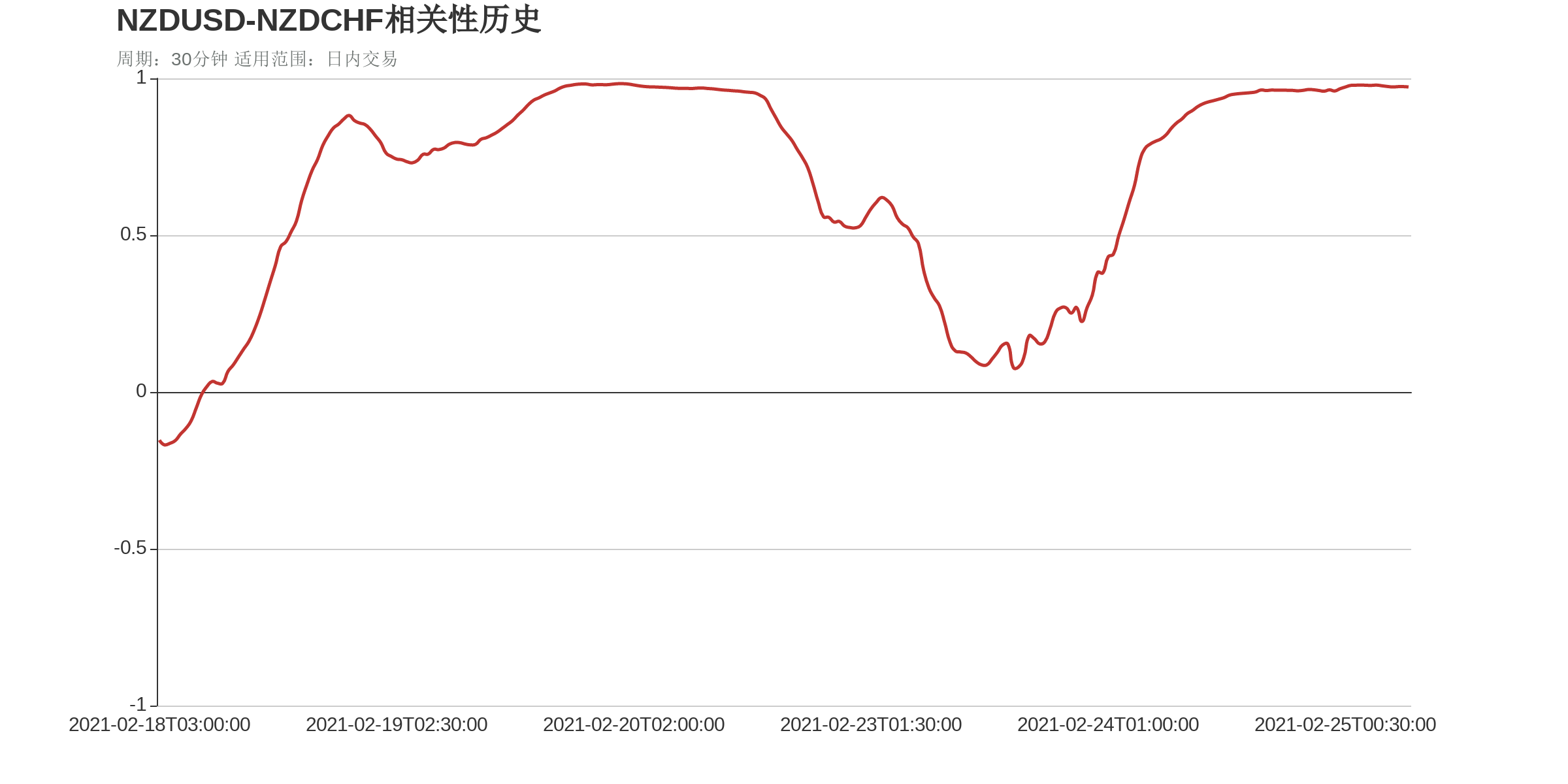根据外汇相关性实时追踪,NZDUSD在30分钟周期下与部分货币的相关性排行如下图: