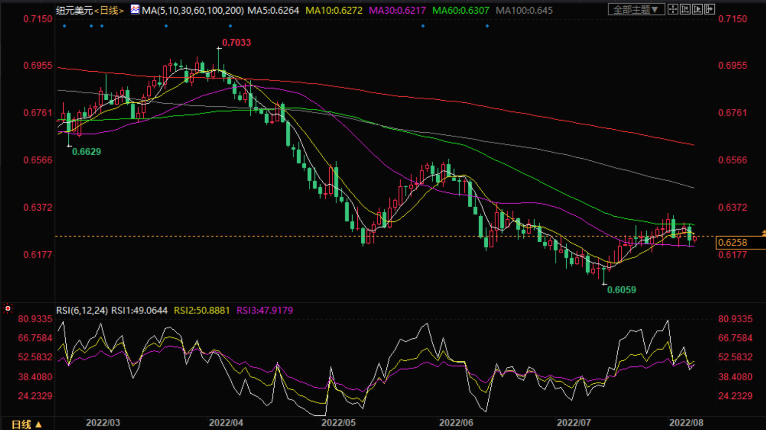 如果纽元兑美元继续弱于0.6160,那么0.6100这个整数和之前的月度低点,也就是年度底部,在0.6060附近,将会是焦点。