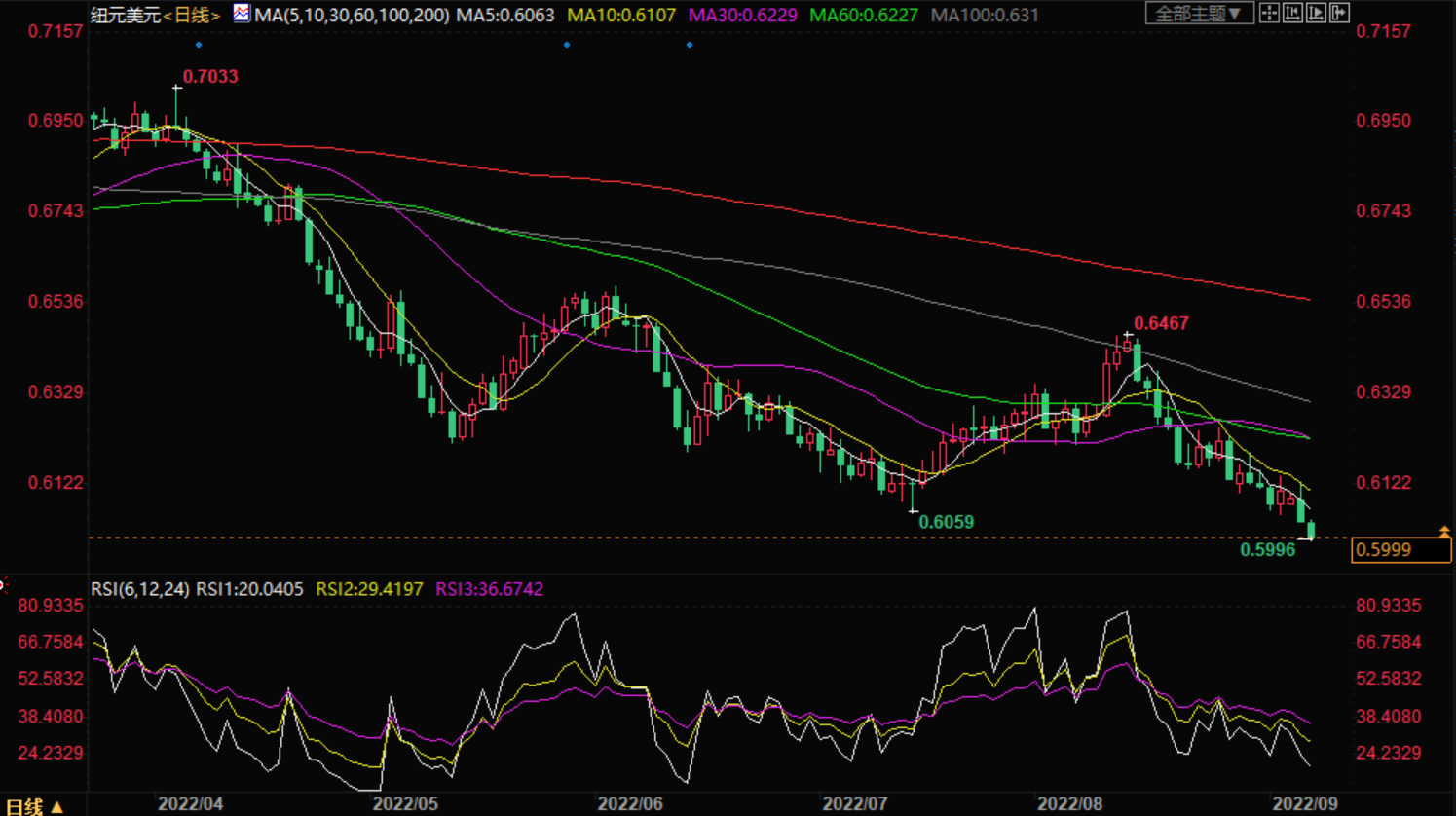 跌破两年低点0.6030将拖累该资产走向心理支撑位0.6000,随后是2020年4月20日的低点0.5910。