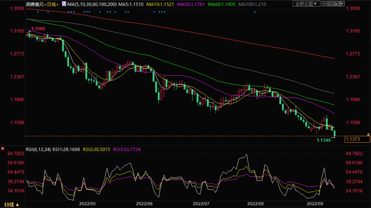 今天早些时候,英镑跌至1.1350,这是自2020年3月以来的最低水平。英镑兑美元在欧洲市场交易于1.1374,下跌0.73%。
