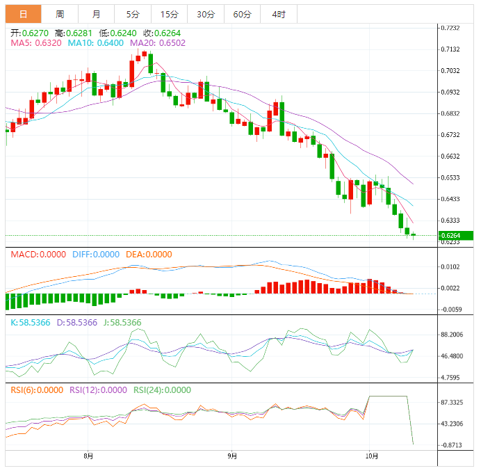 另一方面,如果澳元兑美元决定性突破10月4日的高位0.6548,将推动该资产向一轮阻力位0.6600靠拢。若突破后者,澳元兑美元将突破50日移动均线0.6661。