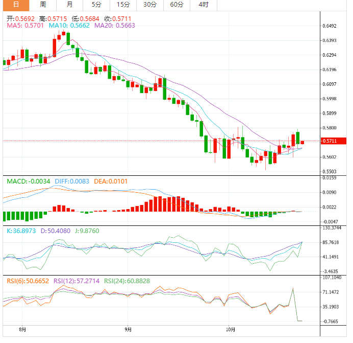 在此过程中,纽元刷新了0.5715附近的盘中高位,同时从21日移动均线和10日移动均线汇流线反弹,目标是8月12日以来的下行趋势线阻力位,最晚在0.5745附近。