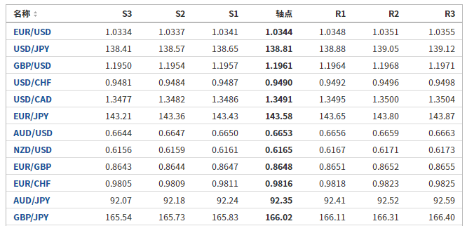 日元:美元/日元收低,收报138.927,跌幅0.16%。技术面上,汇价上行的初步阻力位于139.714,进一步阻力位140.536,关键阻力位于141.651;汇价下行的初步支撑位于137.777,进一步支撑位于136.662,更关键支撑位于135.84。