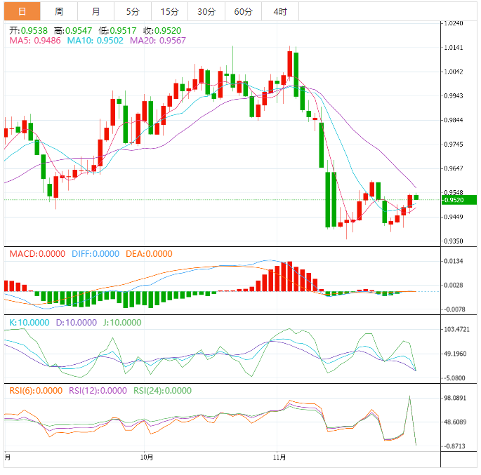 即便如此,11月11日由阻力位转为支撑位的线(接近0.9520)限制了美元兑瑞郎立即下行。