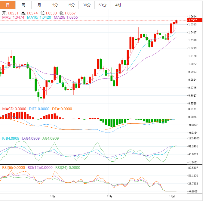 20期和50期指数移动平均线(EMAs)分别位于1.0526和1.0494,这增加了上行过滤器。