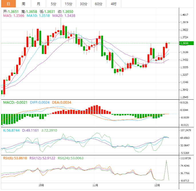 也就是说,11月1.3810附近的高位吸引了短期美元/加元多头,随后推动美元/加元在1.3850附近遭遇多重障碍。