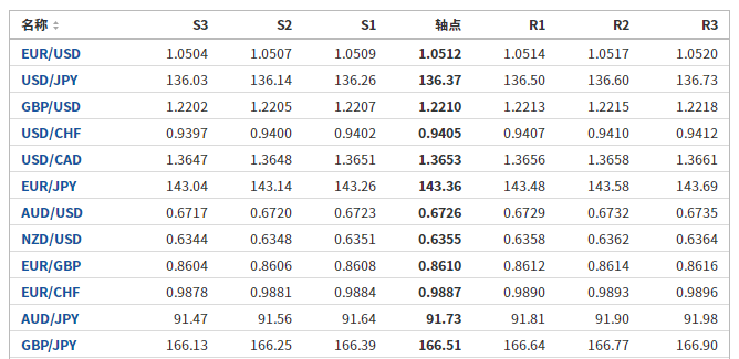 日元:美元/日元收低,收报136.590,跌幅0.32%。技术面上,汇价上行的初步阻力位于137.546,进一步阻力位138.523,关键阻力位于139.193;汇价下行的初步支撑位于135.899,进一步支撑位于135.229,更关键支撑位于134.252。