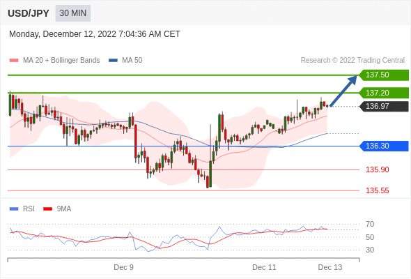 在 136.30 之上,看涨,目标价位为 137.20 ,然后为 137.50 。