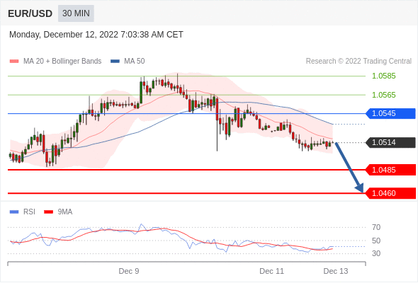 在 1.0545 之下,看跌,目标价位为 1.0485 ,然后为 1.0460 。
