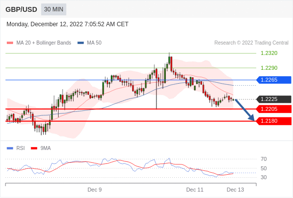 在 1.2265 之下,看跌,目标价位为 1.2205 ,然后为 1.2180 。