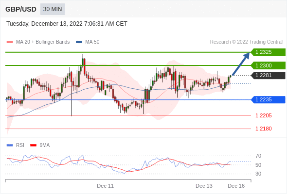 在 1.2235 之上,看涨,目标价位为 1.2300 ,然后为 1.2325 。