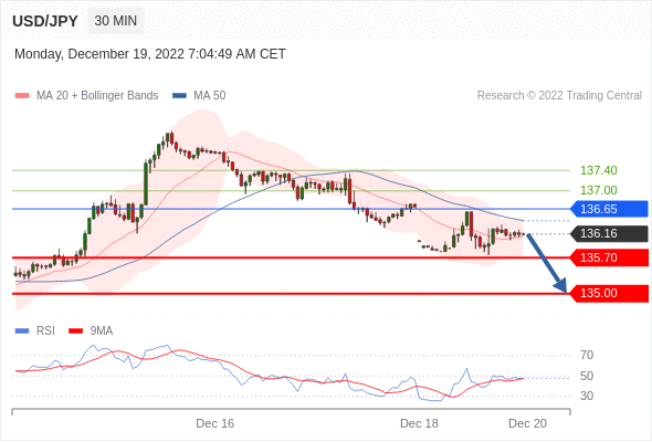 在 136.65 之下,看跌,目标价位为 135.70 ,然后为 135.00 。 在 136.65 上,看涨,目标价位定在 137.00 ,然后为 137.40。