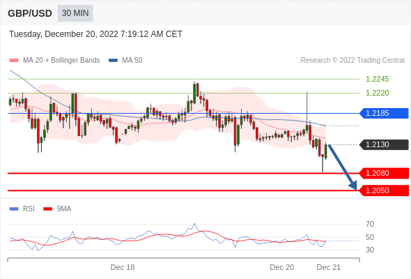 在 1.2185 之下,看跌,目标价位为 1.2080 ,然后为 1.2050 。 在 1.2185 上,看涨,目标价位定在 1.2220 ,然后为 1.2245。