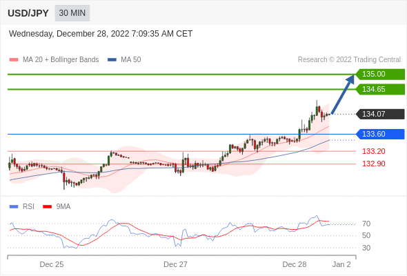 在 133.60 之上,看涨,目标价位为 134.65 ,然后为 135.00 。在 133.60 下,看空,目标价位定在 133.20 ,然后为 132.90。