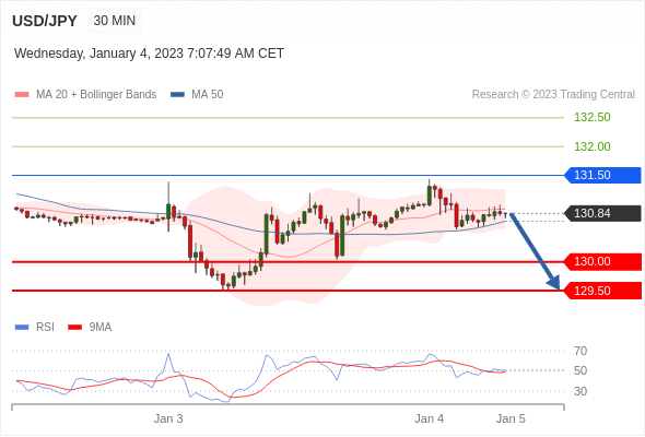 在 131.50 之下,看跌,目标价位为 130.00 ,然后为 129.50 。 在 131.50 上,看涨,目标价位定在 132.00 ,然后为 132.50。